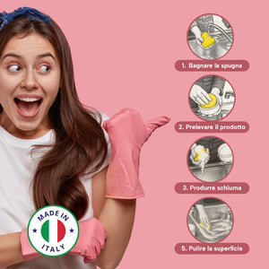 Per lo sporco più ostinato, lasciare agire il prodotto per alcuni secondi prima di risciacquare.